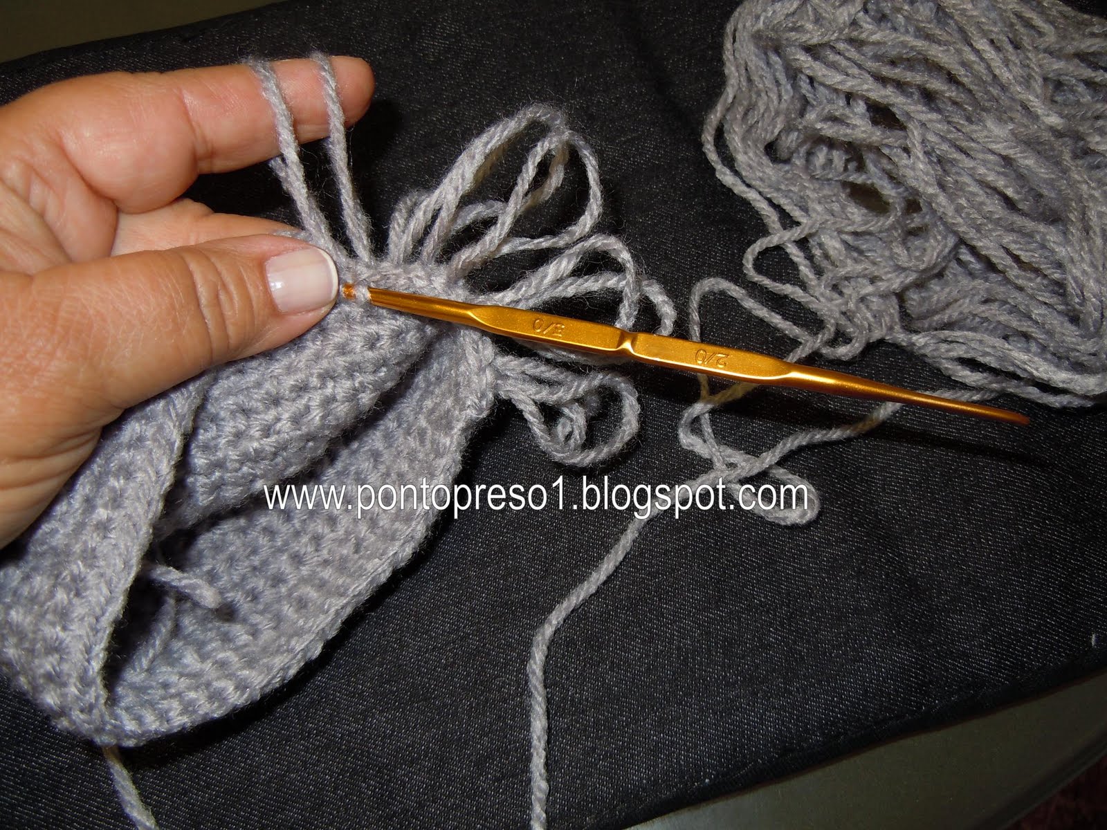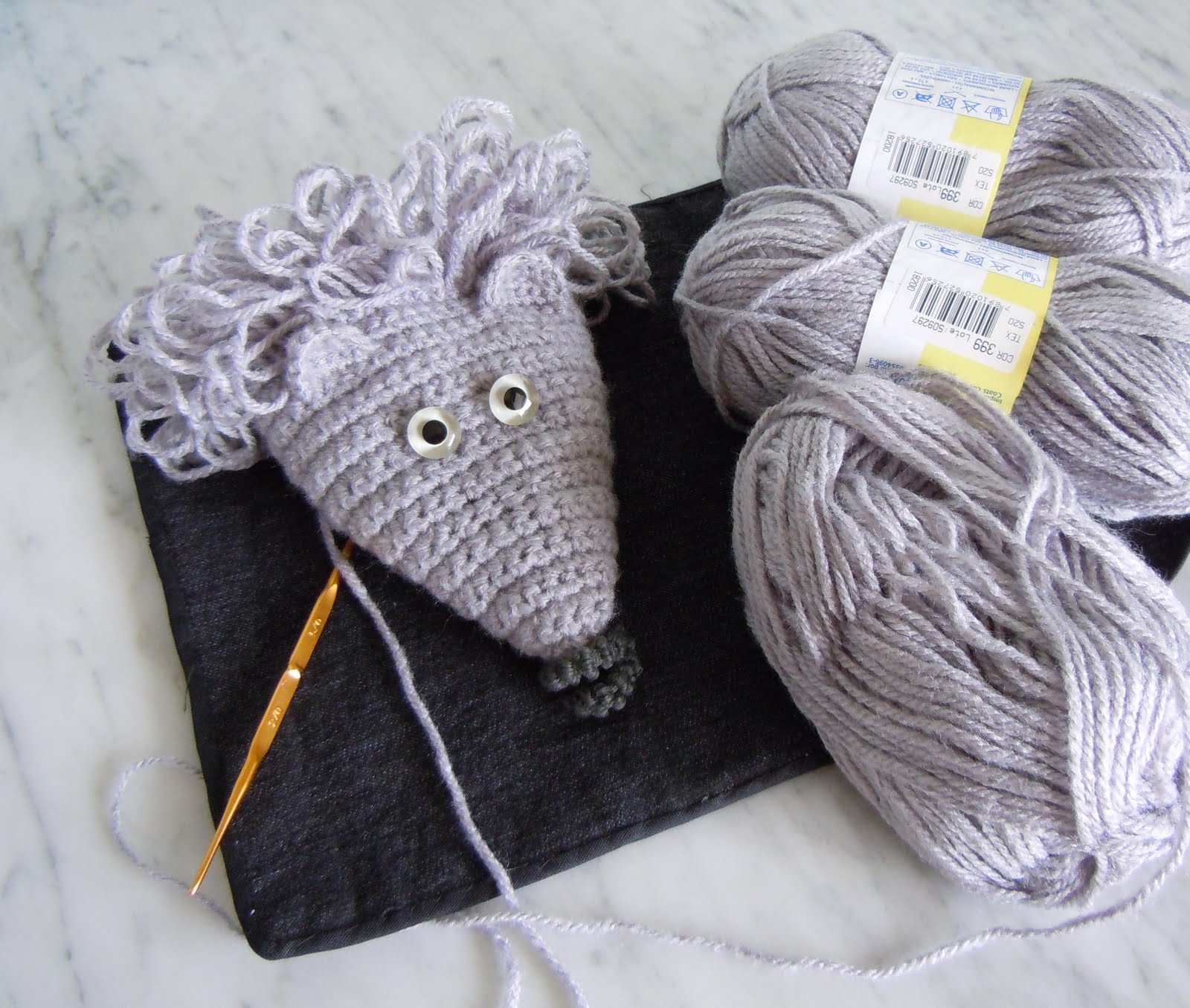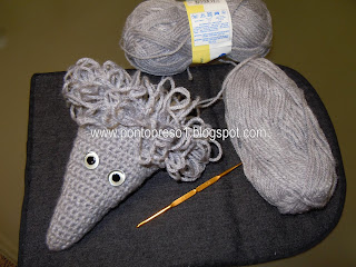 E começei a fazer pelo "focinho". . . em pontos baixos, e depois, fazendo aumentos a cada duas carreiras;