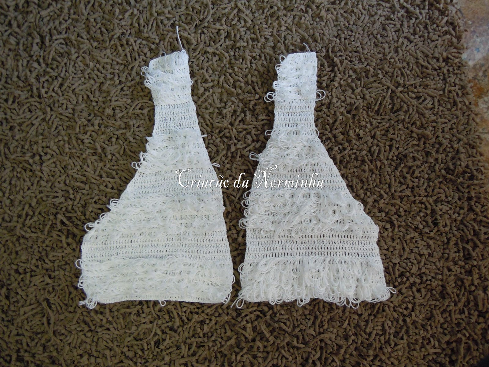 Pontos baixos, intercalando as tiras, depois vou passando uma por dentro da outra . . .
