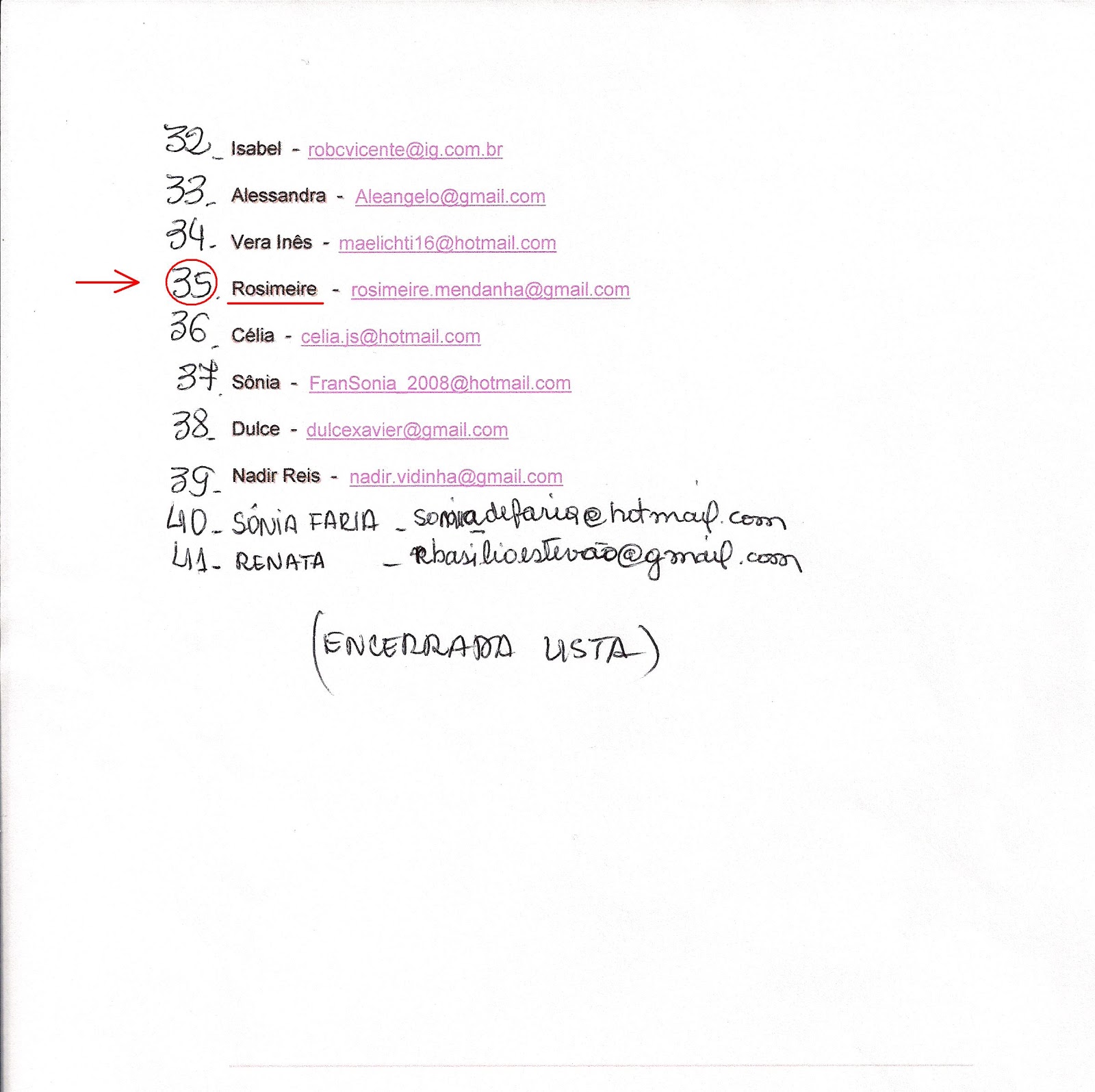 A FELIZARDA foi a de Nº 35 - ROSIMEIRE - Por favor, comunique-se comigo!