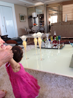 Uma mesa, cheia de cores e brilhos! Por pouco, se meu marido não fosse tão rápido, estaríamos juntando os cacos! rs...