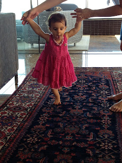 Estamos tentando fazer a nossa pequena MANEQUIM desfilar em nossa passarela ... rs...