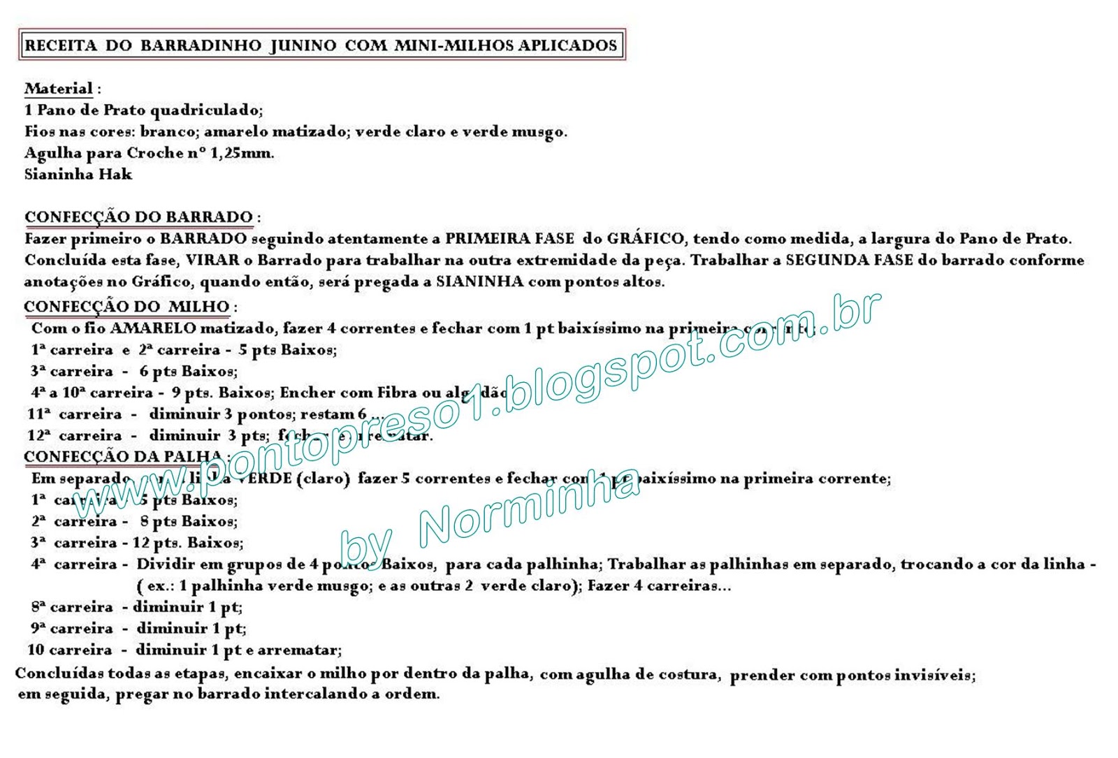 Barradinho "Junino" - Mini milhos barrados - aguardem gráfico, receita e PAP;
