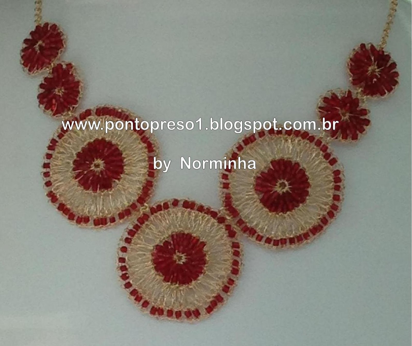 Fio dourado e missanguinhas formando circulos, fazem esta bela peça em Croche ...