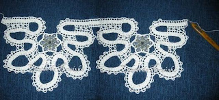 Não resisto a tentação de mostrar logo para voces ! Estou concluindo o acabamento deste barrado feito com paetés transparentes (furtacor) e linha Merce Crochet n. 60