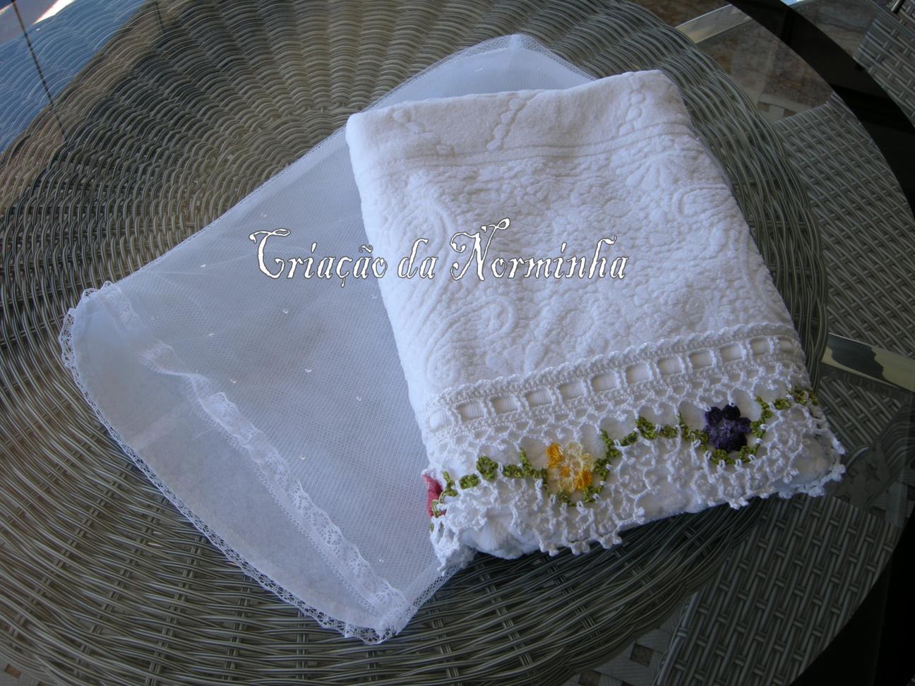 Para dar graciosidade, contornei o acabamento do decote com pontos baixos e picos; fiz uma pequena Flor e prendi com um botãozinho ...No último babado, também contornei com pontos baixos e picos;