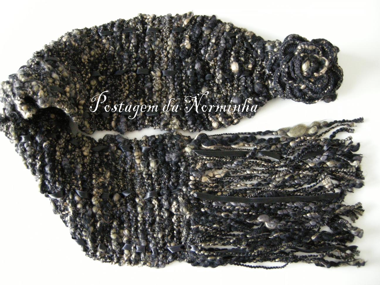 Trabalhei com esta agulha, que não sei nem o número, pois foi feita pelo marido de uma comerciante; e esta lã - sendo matizada nas cores preta e marfim ...