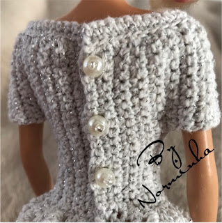 ... fui medindo no corpo da boneca... iniciei com 40correntinhas; deixei 5 correntinhas de espaço de um bojo para o outro, na primeira carreira;